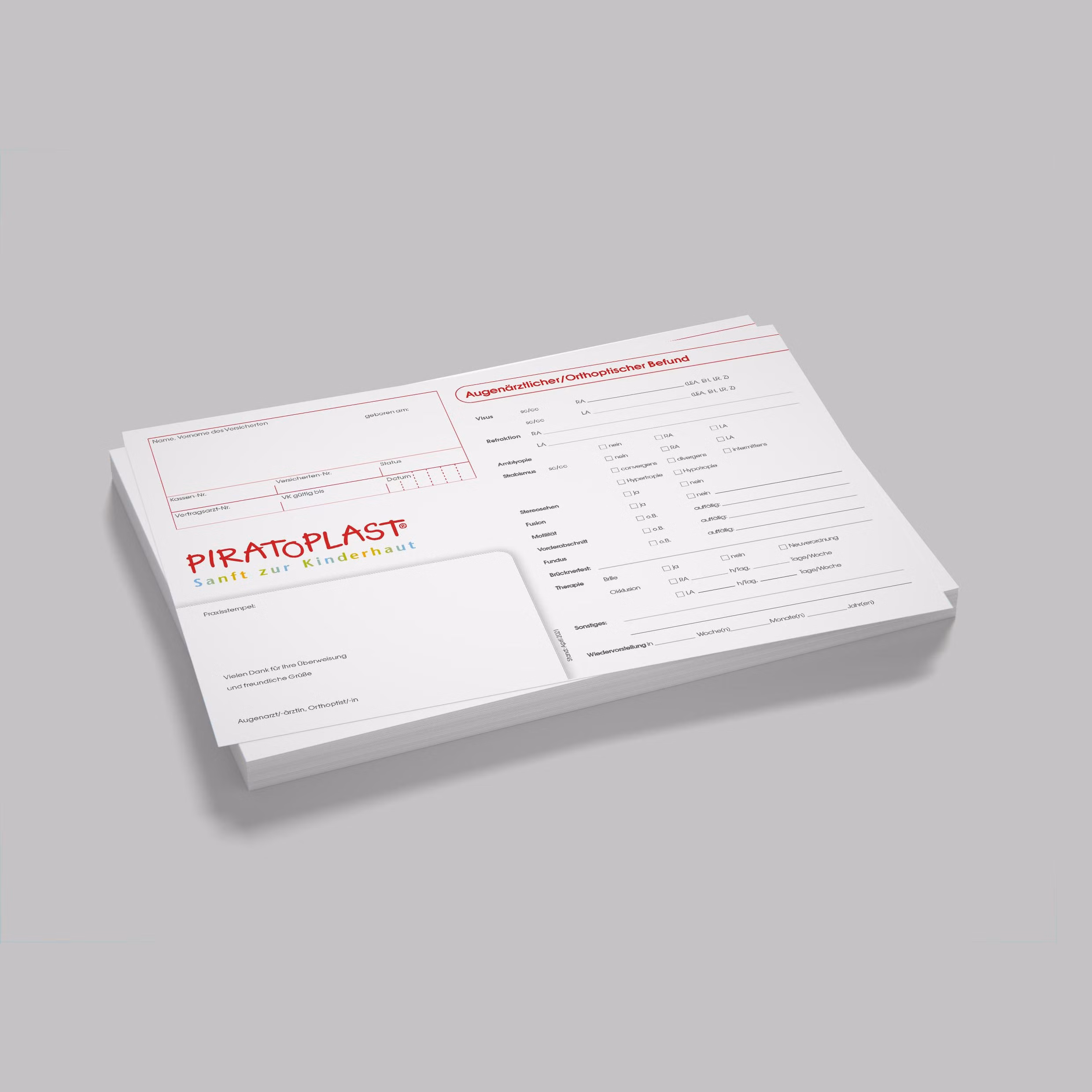 Für Eltern und Kinder bieten wir kreative Ausmalbilder, Mandalas, Bastelvorlagen und Nahbereichsübungen, die den Alltag mit Augenpflastern spielerisch und motivierend gestalten. Fachpersonal stellen wir praktische Unterstützungsmaterialien zur Verfügung, die den Praxisalltag erleichtern, wie Anamnesebögen in verschiedenen Sprachen, Bestellformulare für Augenpflaster und verschiedene Praxisposter.