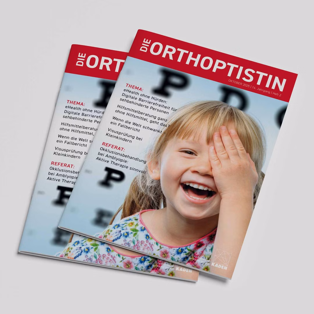 Als Partner in der Okklusionstherapie unterstützen wir die Fachzeitschrift „Die Orthoptistin”, die vom Kaden-Verlag herausgegeben wird. Die Zeitschrift erscheint zweimal im Jahr und bietet fundierte Informationen zu den wichtigsten Themen aus der Orthoptik sowie spannenden Einblicken in das Berufsfeld der Orthoptistin.